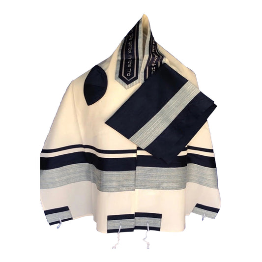 Men's Tallit: ADEB-510 Navy Blue & Silver Stripes