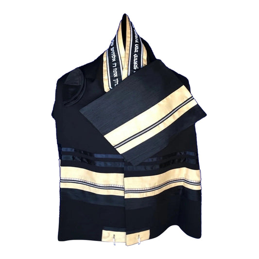 Men's Tallit: ADEB-519 Black Wool & Gold