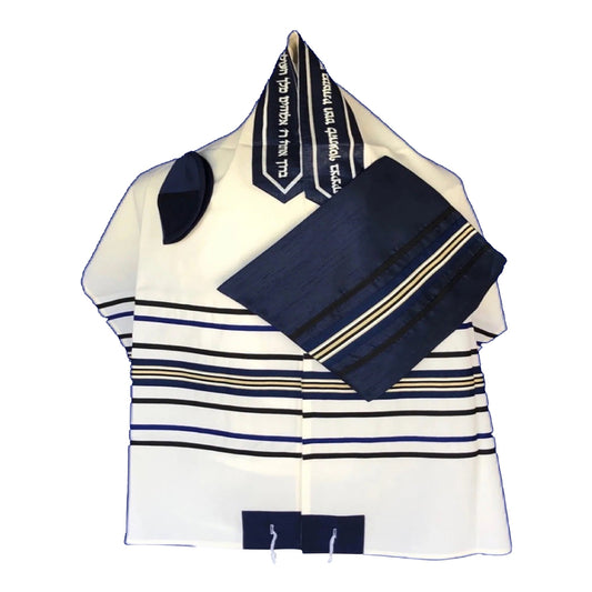 Men's Tallit: ADEB-956 Navy Blue & Gold